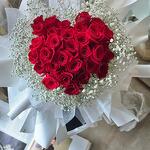Un ramo impresionante de rosas de un rojo intenso. Es el símbolo perfecto del amor eterno y la pasión — ideal para aniversarios, propuestas de matrimonio o sorpresas románticas.