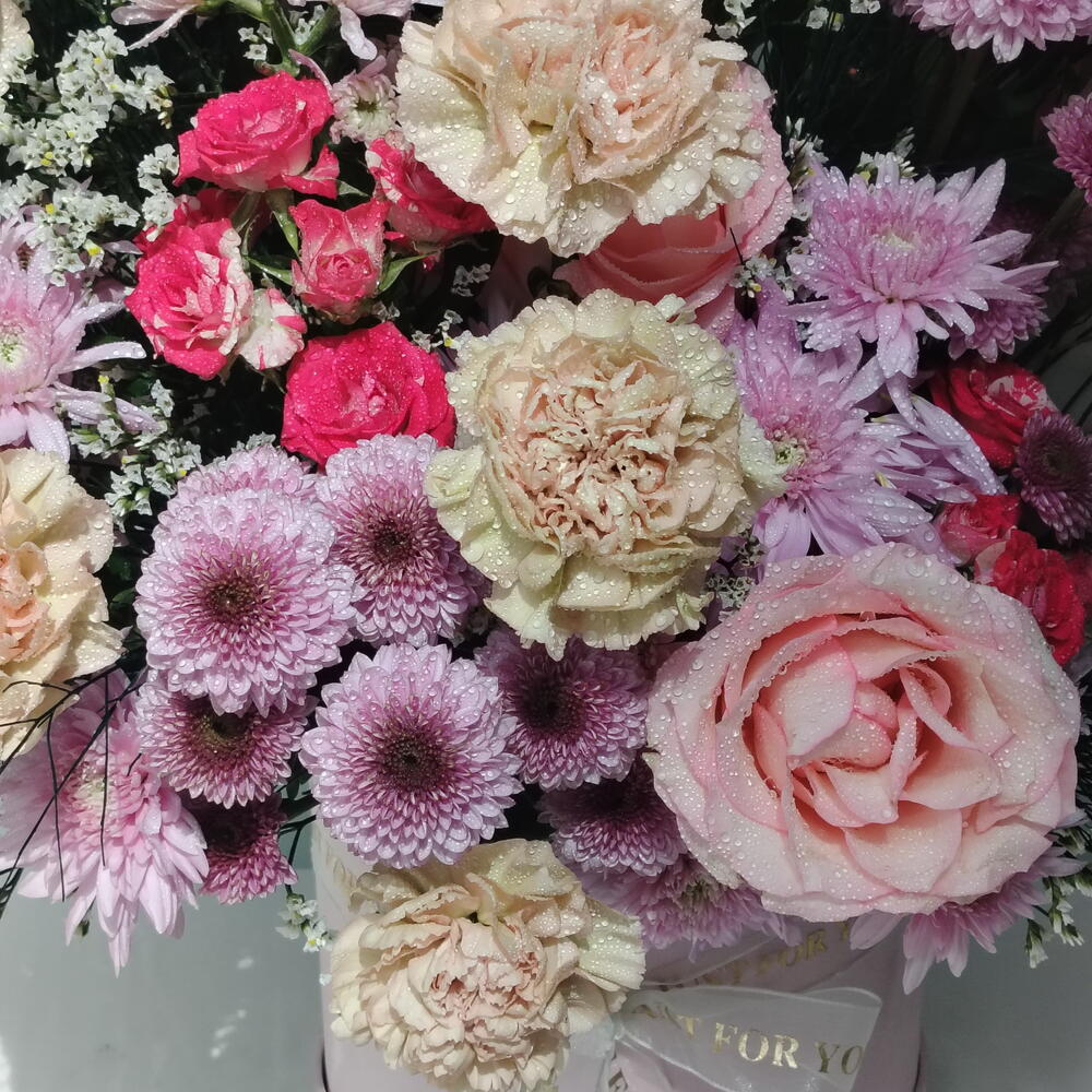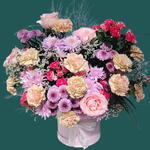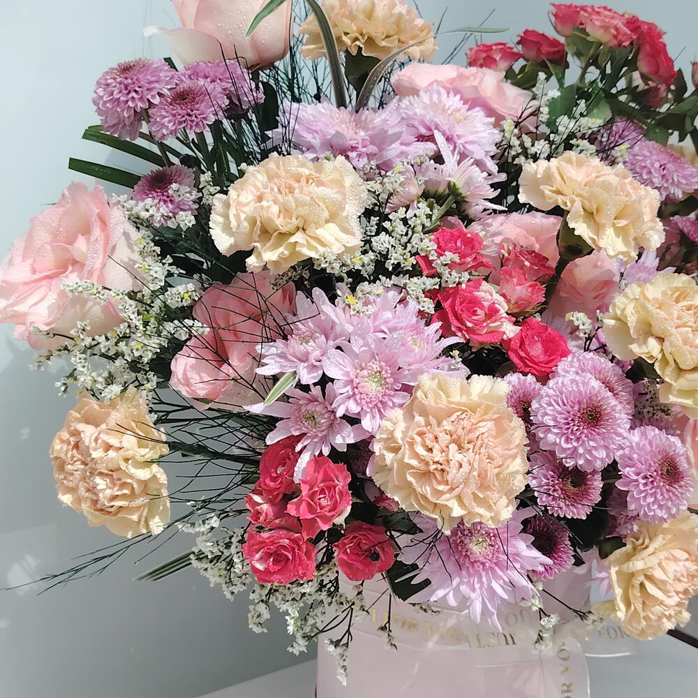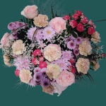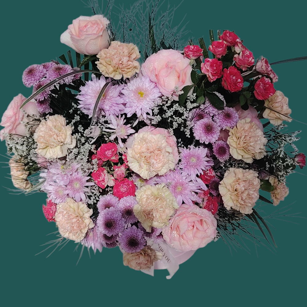 Pink rose - 8 ud. carnation - 12 ud. rosa bebé rosa - 6 ud. crsathimum - 7 ud. labios verdes - 6 ud. nimonium - 5 ud.