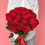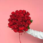 Un ramo impresionante y opulento de rosas rojas de intenso escarlata, que simboliza pasión, amor y admiración profundas. El gran volumen de flores crea una exuberante y grandiosa declaración de devoción—el gesto romántico perfecto para aniversarios o cualquier ocasión que requiera una exhibición realmente inolvidable. Tamaño pequeño - 30 rosas rojas