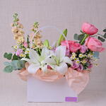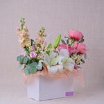 Nuestros floristas expertos combinan una variedad de flores en colores y texturas armoniosos, creando una exhibición impresionante que irradia sofisticación y encanto. Ya sea que estés celebrando un momento especial o simplemente alegrando el día de alguien, la caja de flores Pure Bliss es un regalo atemporal que dice mucho. Características: Calidad premium: Se seleccionan únicamente las flores más finas para asegurar una belleza duradera. Diseño exquisito: Una mezcla de flores cuidadosamente arreglada para un impacto visual impresionante. Regalo versátil: Ideal para cumpleaños, aniversarios, para dar las gracias o simplemente porque sí. Frescura garantizada: Entregado fresco en tu puerta, asegurando el máximo disfrute.