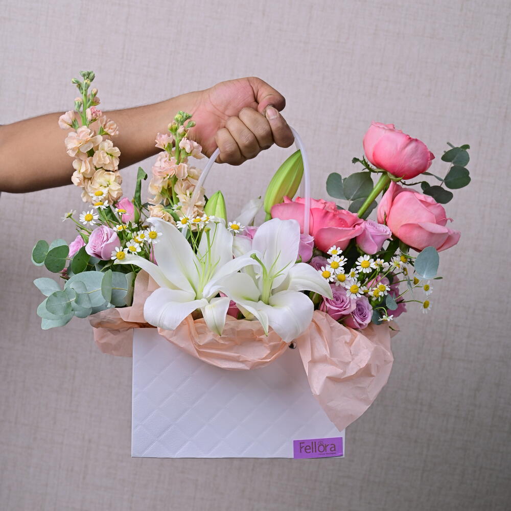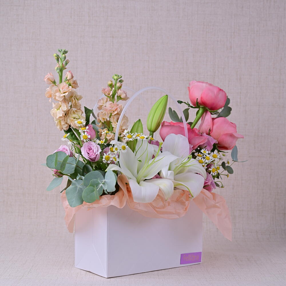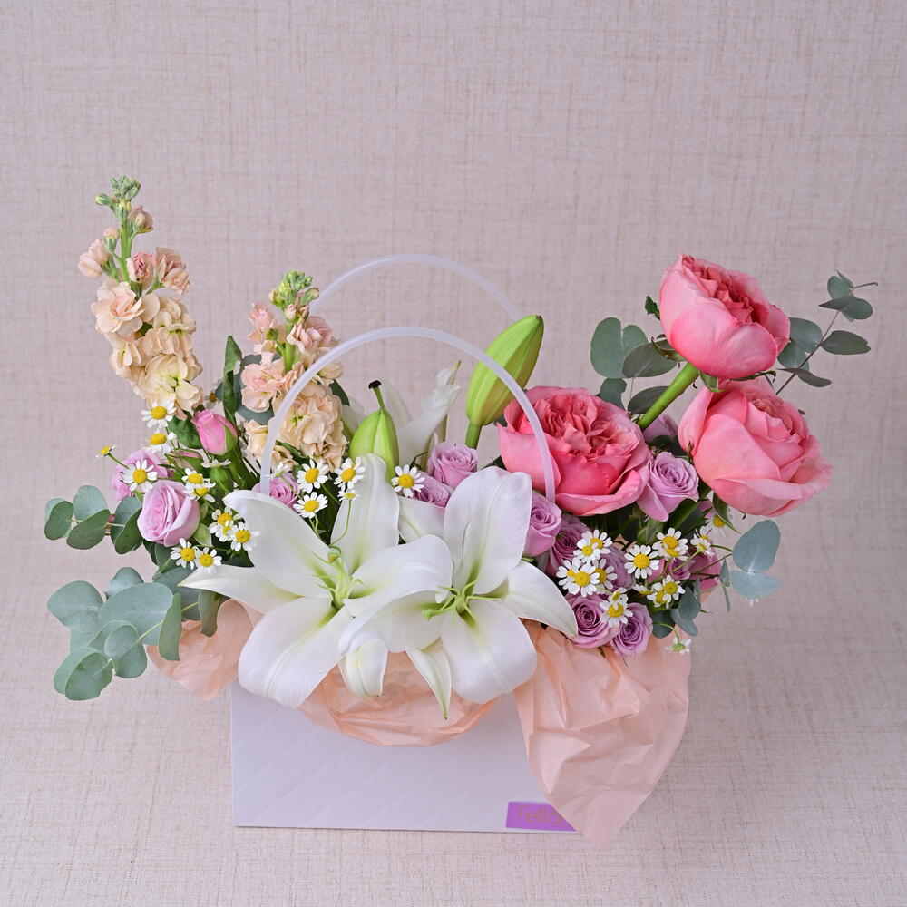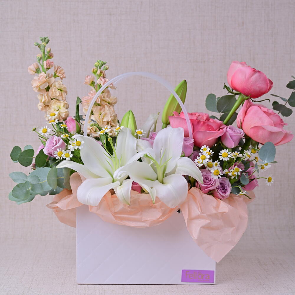 Nuestros floristas expertos combinan una variedad de flores en colores y texturas armoniosos, creando una exhibición impresionante que irradia sofisticación y encanto. Ya sea que estés celebrando un momento especial o simplemente alegrando el día de alguien, la caja de flores Pure Bliss es un regalo atemporal que dice mucho. Características: Calidad premium: Se seleccionan únicamente las flores más finas para asegurar una belleza duradera. Diseño exquisito: Una mezcla de flores cuidadosamente arreglada para un impacto visual impresionante. Regalo versátil: Ideal para cumpleaños, aniversarios, para dar las gracias o simplemente porque sí. Frescura garantizada: Entregado fresco en tu puerta, asegurando el máximo disfrute.