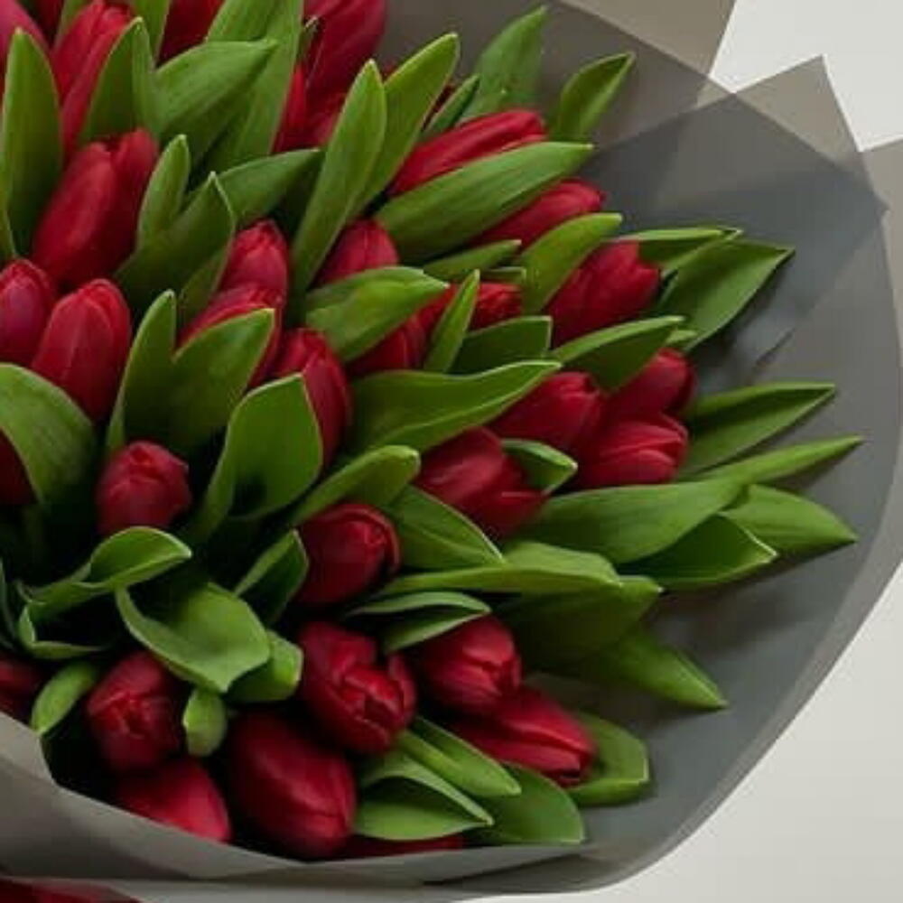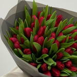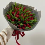tulipanes rojos - 59 ud. rabink negro - 6 ud. cinta roja - 2 ud.