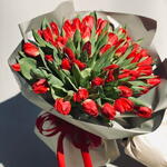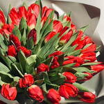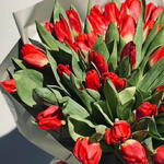 tulipanes rojos - 70 ud. rabink negro - 5 ud. cinta roja - 2 ud.