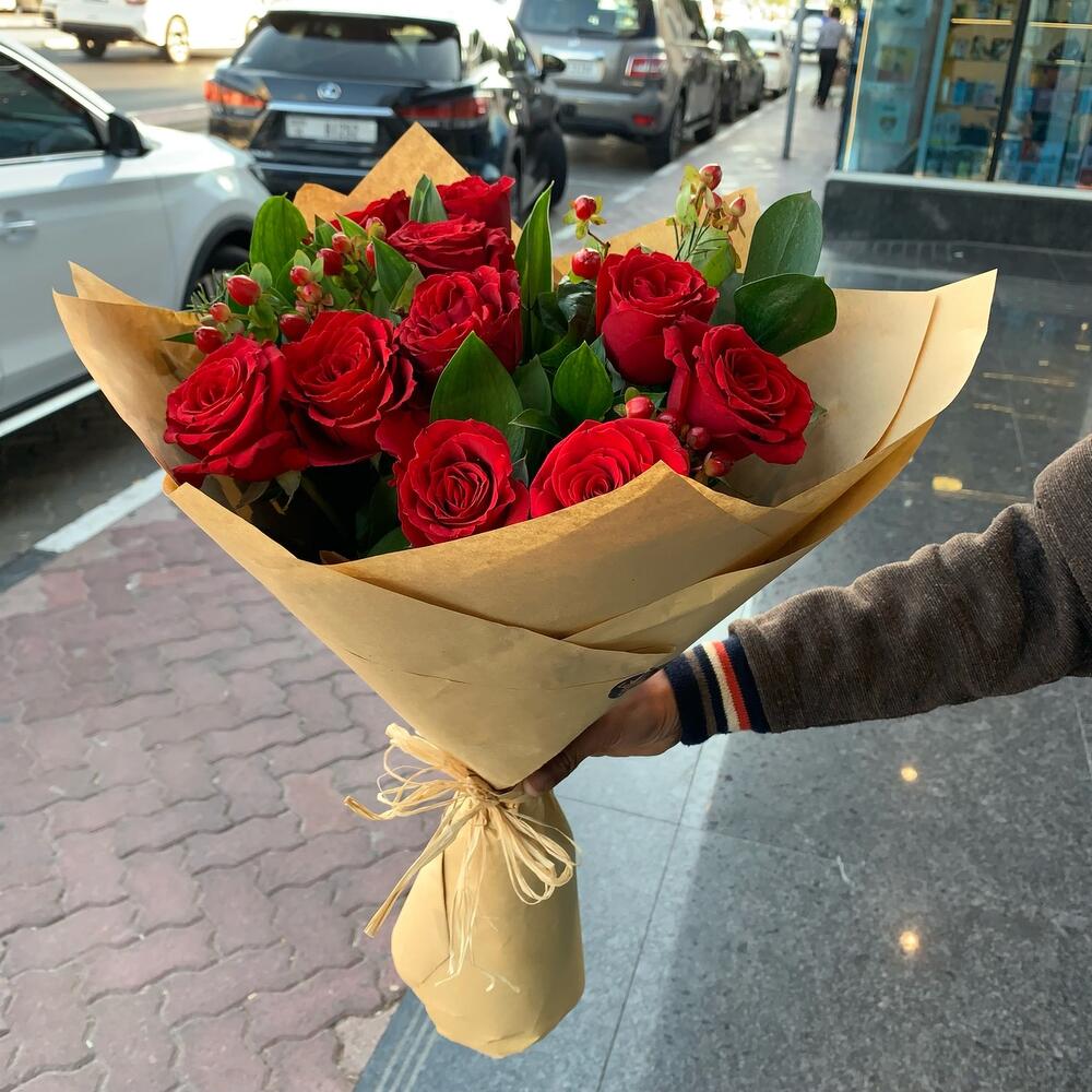 Red rose - 10 ud. hermoso envoltorio marrón - 1 ud.