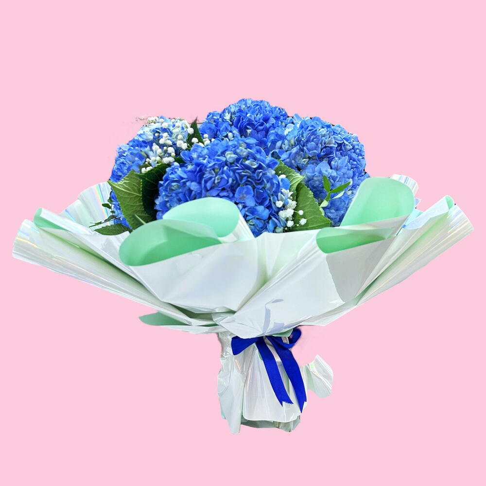 Sumérgete en la serena belleza de este exquisito ramo, con 10 hortensias azules de tamaño mediano y sus vibrantes flores con aspecto de nube; estas hortensias simbolizan gratitud, armonía y emociones sinceras. Perfecto para ocasiones especiales o simplemente para alegrar el día de alguien, este arreglo irradia tranquilidad y elegancia.