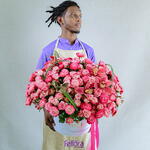Disfruta de la radiante belleza de nuestro ramo "Spray of Joy", un conjunto encantador elaborado para brindar felicidad y elegancia a cualquier ocasión. Este exquisito arreglo incluye 39 tallos de rosas spray de jardín, conocidas por su abundancia de delicados pétalos y su cautivador aroma. Complementado con 4 tallos de elegantes orquídeas cymbidium, cada flor aporta un toque de sofisticación al ramo. Un tallo de rosas spray puede tener 3 o 4 flores.
