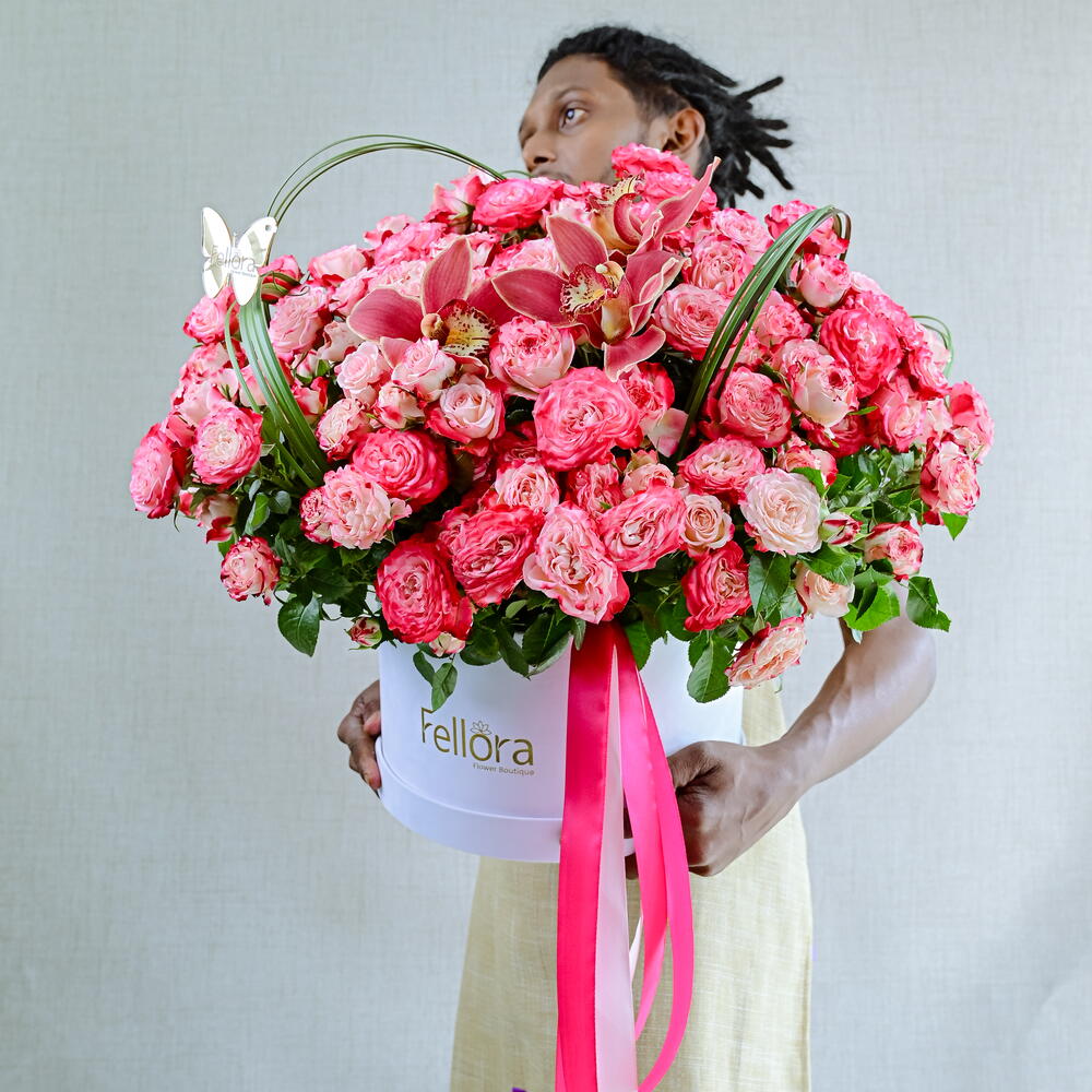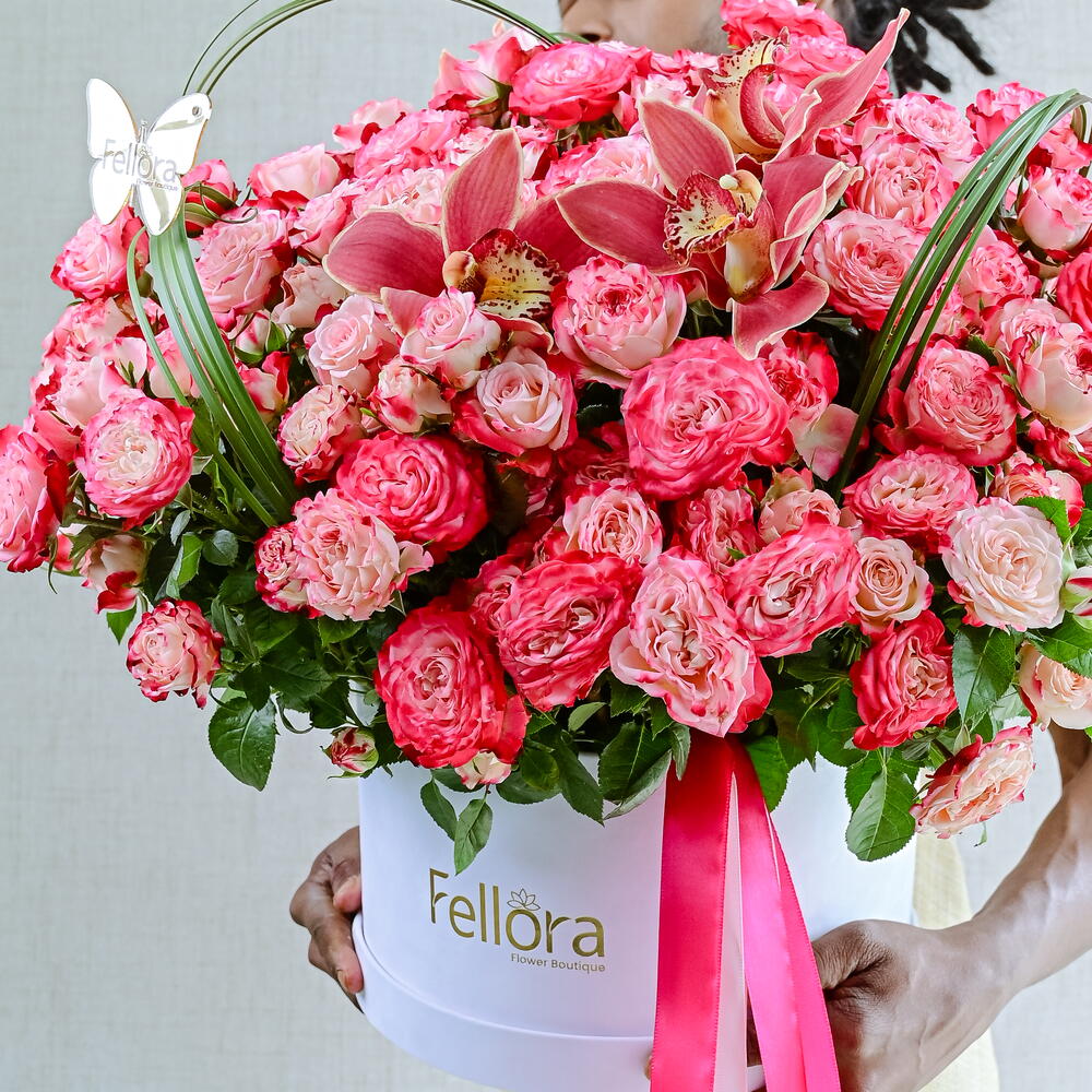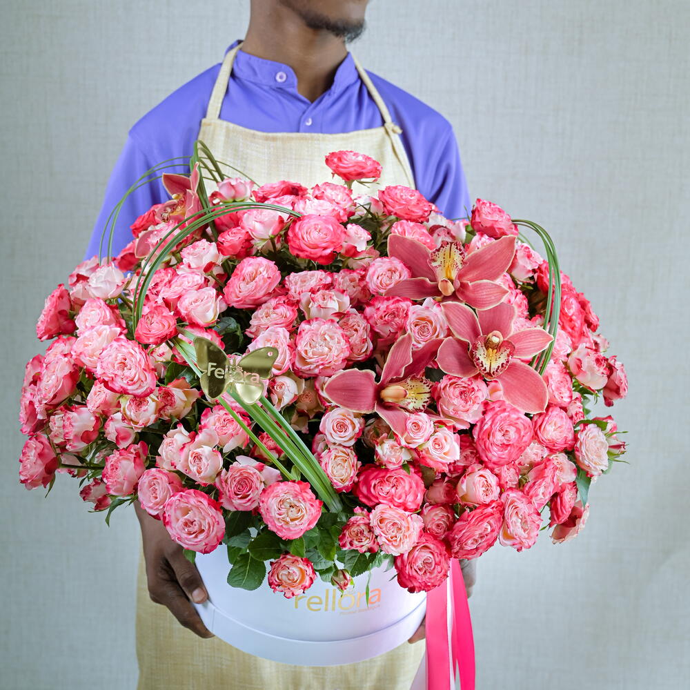 cymbidium - 4 ud. rosa spray de jardín - 39 ud. caja blanca de terciopelo - 1 ud. hierba 20 tallos - 20 ud.