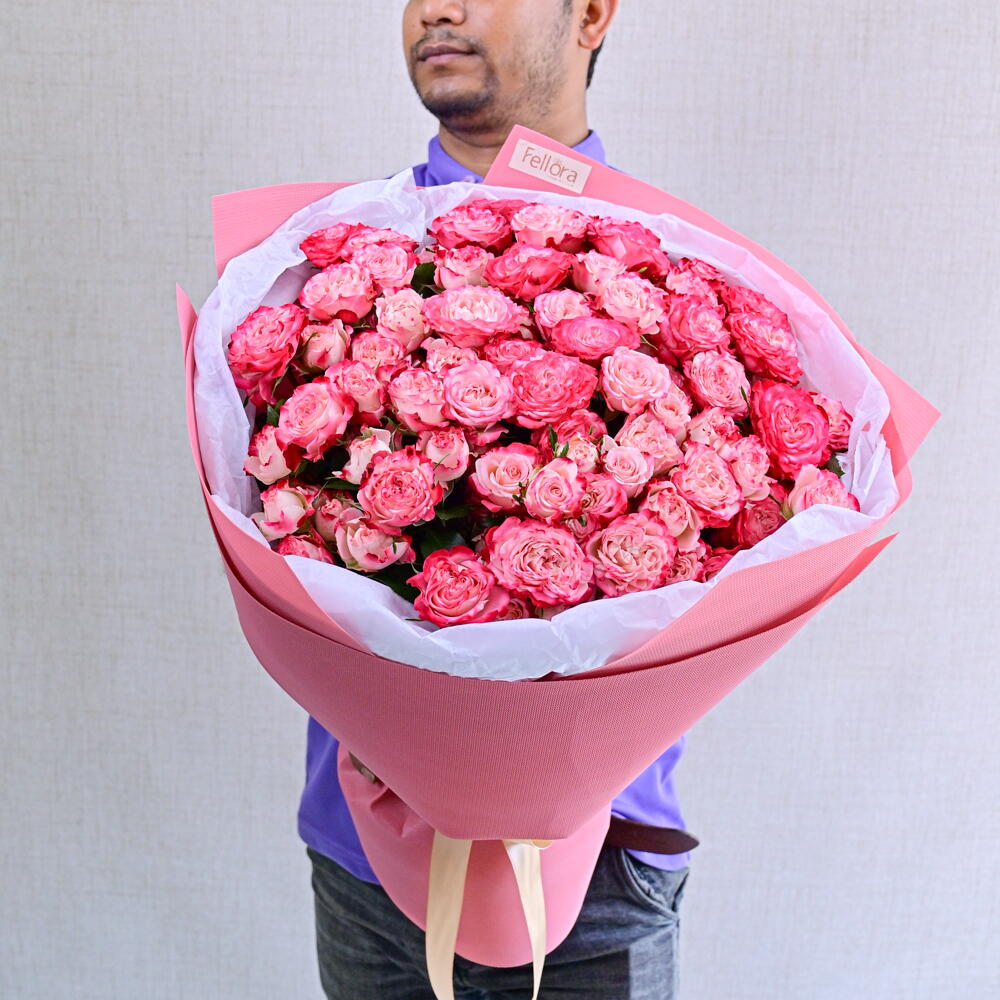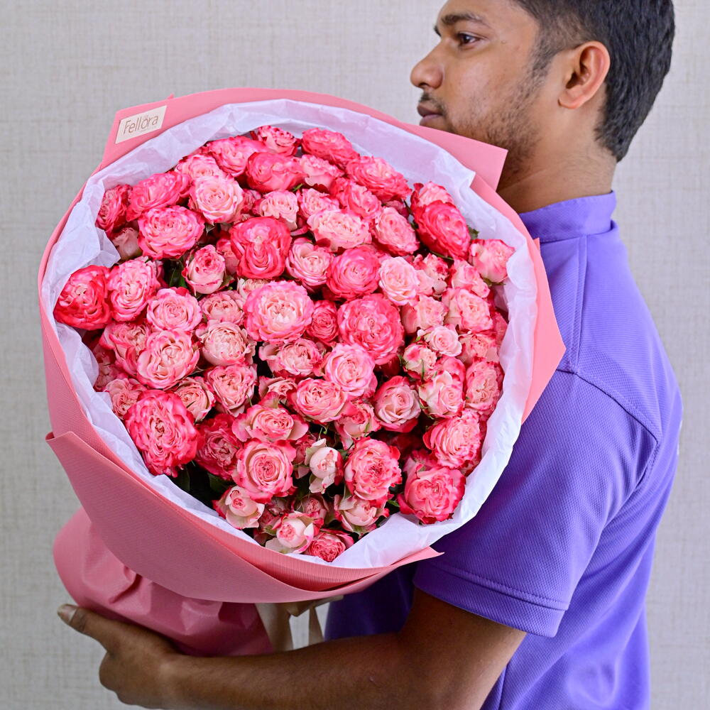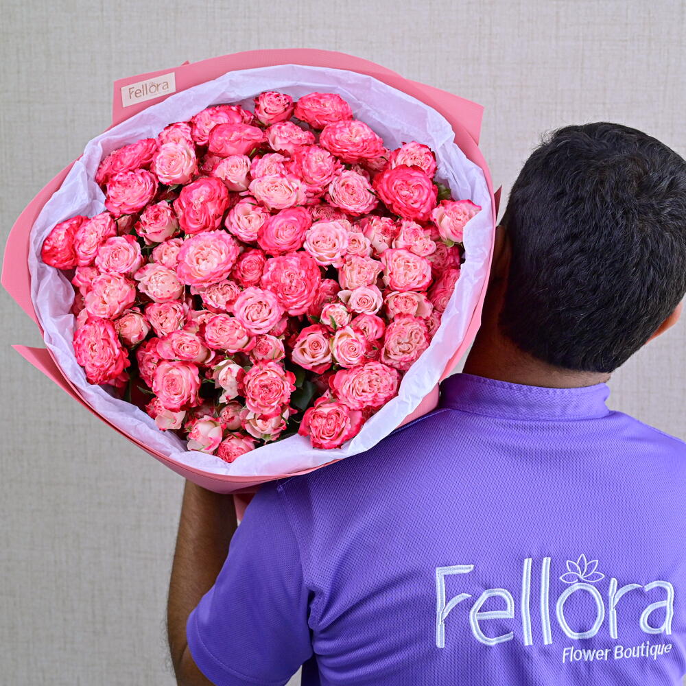 Disfruta de los impresionantes tonos de nuestro ramo Sunset Spray Rose, una exhibición vibrante que captura la calidez y la belleza de una puesta de sol. Con 21 tallos de rosas spray de jardín en tonos que van desde naranjas ardientes hasta amarillos suaves y rojos profundos, este ramo irradia alegría y pasión. Cada flor se selecciona cuidadosamente por su frescura y encanto. Un tallo de rosas spray puede tener 3 o 4 flores.