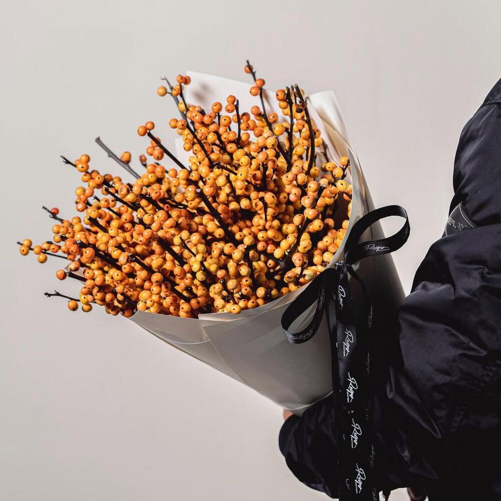 Sumérgete en la viveza de nuestras Ofertas Florales, que cuentan con 20 piezas de llamativos ilex naranja dispuestas con elegancia. El conjunto viene hermosamente envuelto en 5 hojas de elegante papel de regalo, asegurado con una cinta de buen gusto y cuidadosamente empaquetado en una bolsa de papel de calidad para tu comodidad. Añade un toque de color y calidez a tu día con este arreglo cuidadosamente seleccionado.