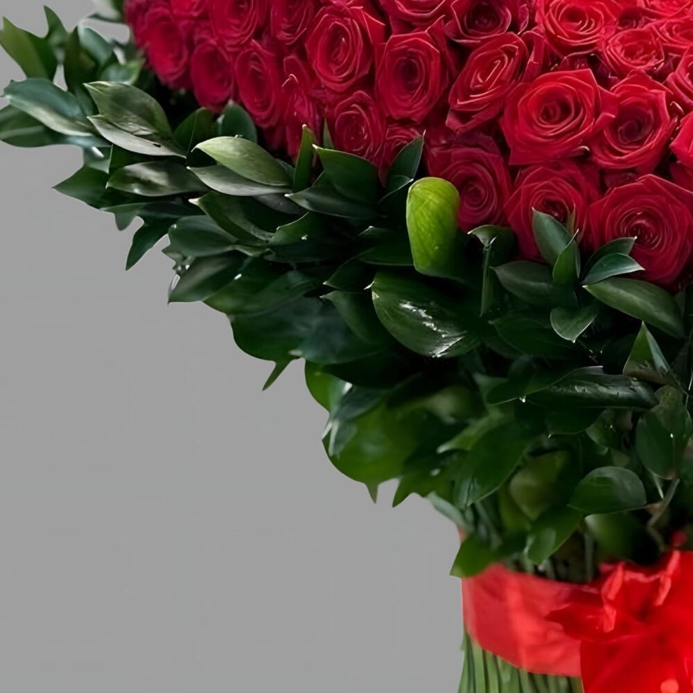 Imagina la expresión de sorpresa y alegría en su rostro cuando reciba este impresionante ramo en forma de corazón. 230 rosas radiantes se alzan en una deslumbrante muestra de amor, un regalo que sin duda le quitará el aliento.