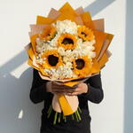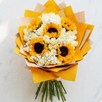 Sunshine Serenity Giant Sunflowers 51 White Roses | Same Day Dubai Wild and pure. Loud and calm. Bold and serene. The Sunshine Serenity Bouquet brings together what seems like opposite worlds — five towering golden sunflowers and fifty-one pristine white roses wrapped in our signature gold paper to create the most visually arresting mixed bouquet in Dubai. Where sunflowers bring energy, white roses bring grace. Together, they create something that cannot be described until its seen. This is the bouquet for the person who contains multitudes. Whats included: ✔ 5 premium giant sunflowers at peak golden bloom ✔ 51 premium white roses hand-selected, full bloom ✔ Babys breath and green foliage accents ✔ Signature gold luxury wrap ✔ Personalised message card your words, our artistry ✔ Same-day delivery across Dubai The Contrast: Theres something deeply satisfying about a bouquet that cant be put in a single category. The sunflowers say Im here. The white roses say Im yours. Together, they say everything at once. This is the bouquet that stops conversations. Perfect for: 🌻 Birthdays for the one who lights up every room 🎓 Graduation gold for achievement, white for new beginnings 🏠 Housewarming the first flowers that fill a new home with joy 👼 New Baby sunshine for the new arrival, white for pure new beginnings 💼 Congratulations the achievement gift that matches the energy ✨ Just Because for someone who deserves both sunshine and serenity today same-day delivery across Dubai.