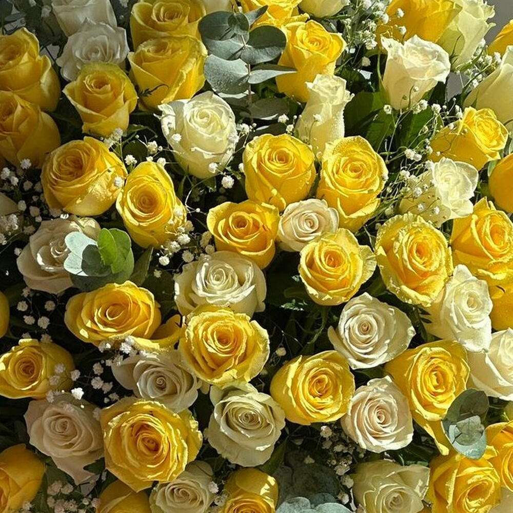 101 Rosas Blancas y Amarillas en Caja de Lujo | Arreglo Floral Elegante | Entrega en Dubái
