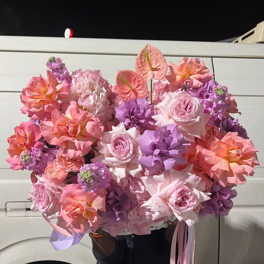 Eustoma - 10 ud. Hydrangea - 10 ud. Anthurium - 2 ud. roses - 40 ud.