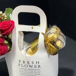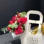 Red rose - 5 ud. Eucaliptus - 2 ud. rosa ramificada roja - 2 ud. chocolate Ferrero - 16 ud. flor de cera o hipérico - 2 ud. bolsa con flor blanca - 1 ud.