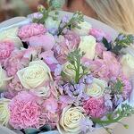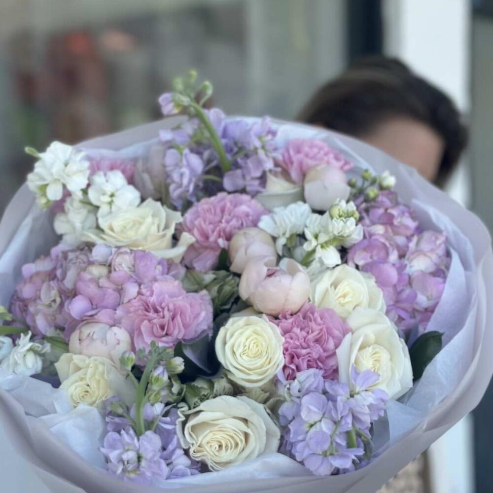Una composición tierna y romántica, Blossom Symphony encanta con su suave paleta de blanco crema, delicado rosa sonrosado y lavanda pastel. Este ramo presenta elegantes rosas blancas, exuberantes claveles rosados, hortensias rosas de ensueño y la caprichosa matthiola lila. Envuelto en papel perlado suave con un lazo de satén, es un regalo perfecto para expresar gratitud, admiración o amor. Ideal para cumpleaños, aniversarios o simplemente para alegrar el día de alguien con elegancia floral.