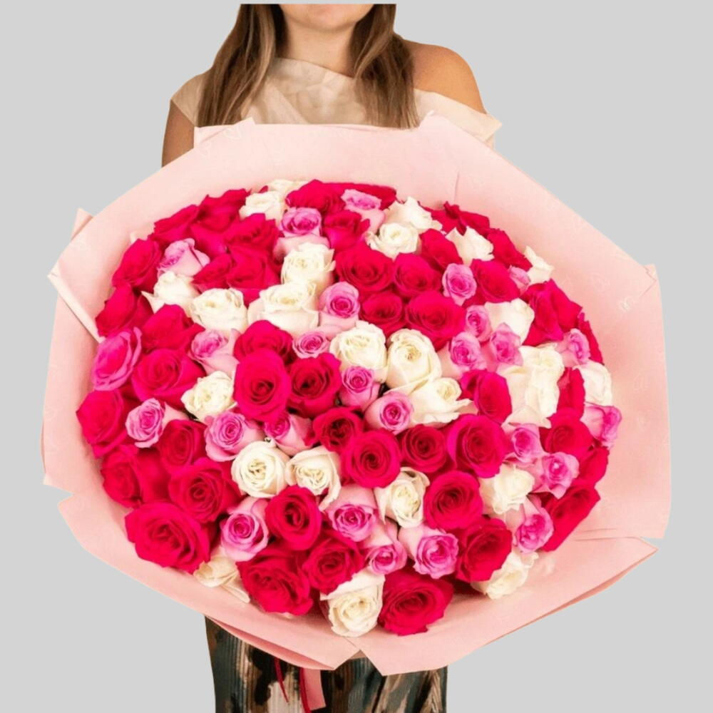 Red rose - 51 ud. Pink rose - 50 ud. White rose - 50 ud.