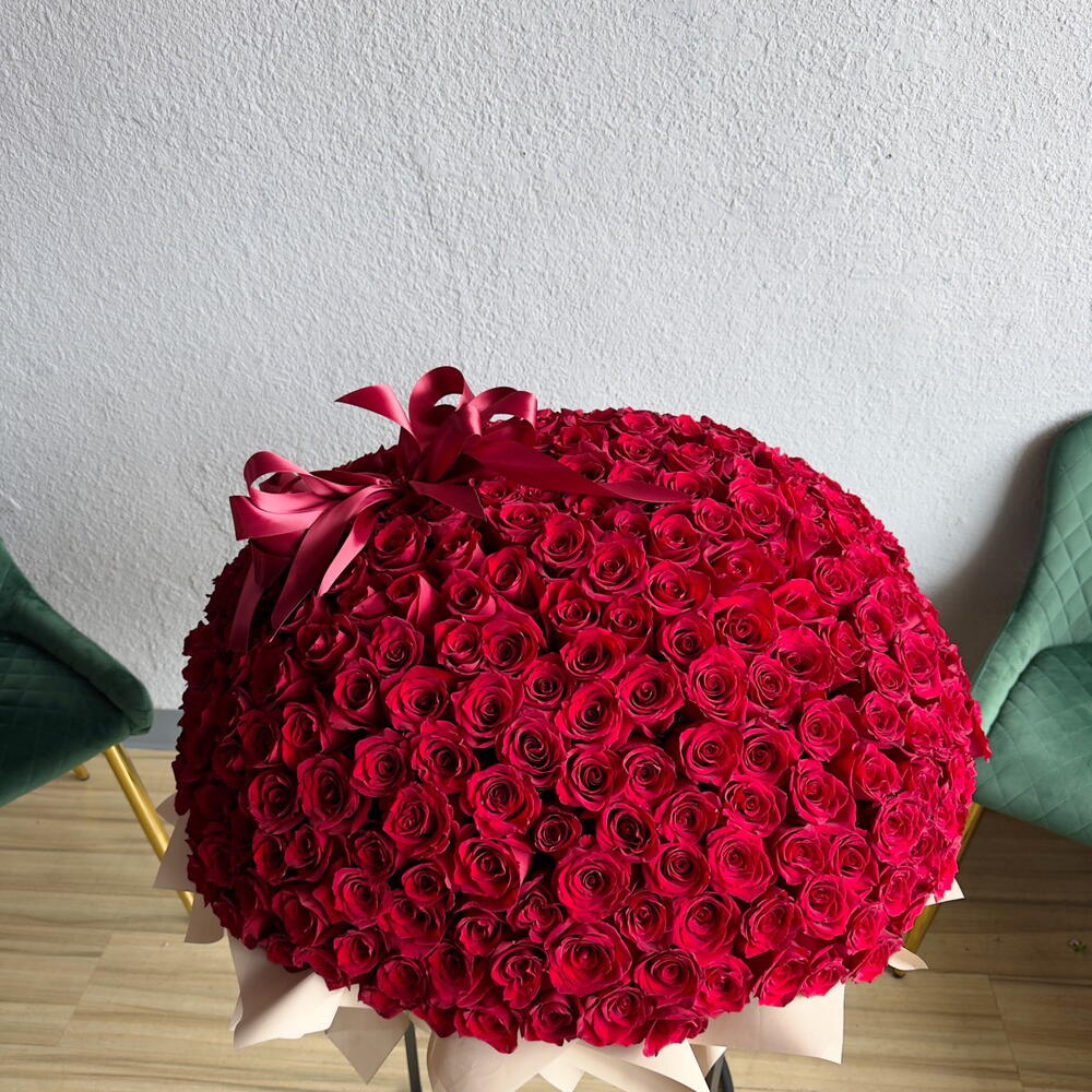 200 rosas rojas en una caja.