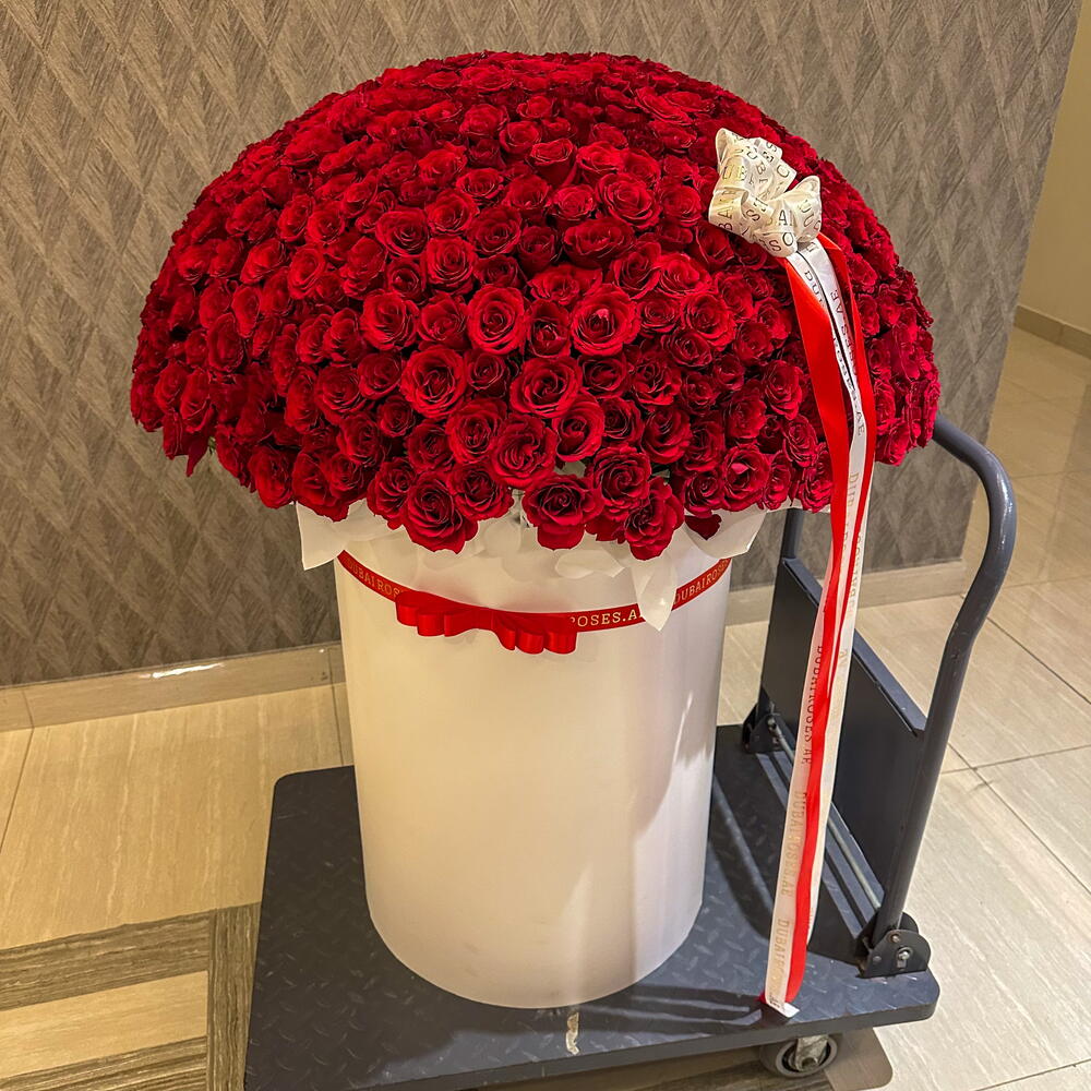 The Imperial 501 — una exhibición extraordinaria de 501 rosas rojas de primera calidad dispuestas en una caja blanca alta y elegante de 110 cm de altura. Esta obra maestra irradia pura pasión y grandeza, creada para quienes no se conforman con gestos ordinarios. Perfecto para propuestas, aniversarios o celebraciones reales, es más que flores — es una declaración de amor en su máxima expresión.