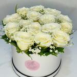 The Softness: Caja de 15 Rosas Blancas con Aliento de Bebé Disfrute de la elegancia atemporal y la belleza inigualable de The Softness, una lujosa caja de 15 rosas blancas impecables, artísticamente complementadas con delicados alientos de bebé. Este exquisito arreglo es perfecto para expresar amor, aprecio y admiración, convirtiéndolo en el regalo ideal para cualquier ocasión. Características principales: Calidad premium: Rosas blancas frescas de la granja, seleccionadas a mano, que garantizan una frescura y belleza duraderas. Presentación elegante: Diseñadas cuidadosamente en una elegante caja, ofrecen una forma sofisticada y práctica de presentar su regalo. Delicados alientos de bebé: Aportan un toque de fantasía y realzan el encanto natural de las rosas. Regalo versátil: Perfecto para cumpleaños, aniversarios, bodas o simplemente para alegrar el día de alguien.