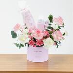 Da la bienvenida a la llegada de una preciosa niña con la Tiny Blessings Bloom Box, un encantador regalo floral que irradia amor, alegría y calidez. Diseñada con esmero en una caja redonda rosa Signature de ZUVEES con el emotivo mensaje “Es una niña”, esta caja floral combina a la perfección flores delicadas y artículos esenciales para recién nacidos.
