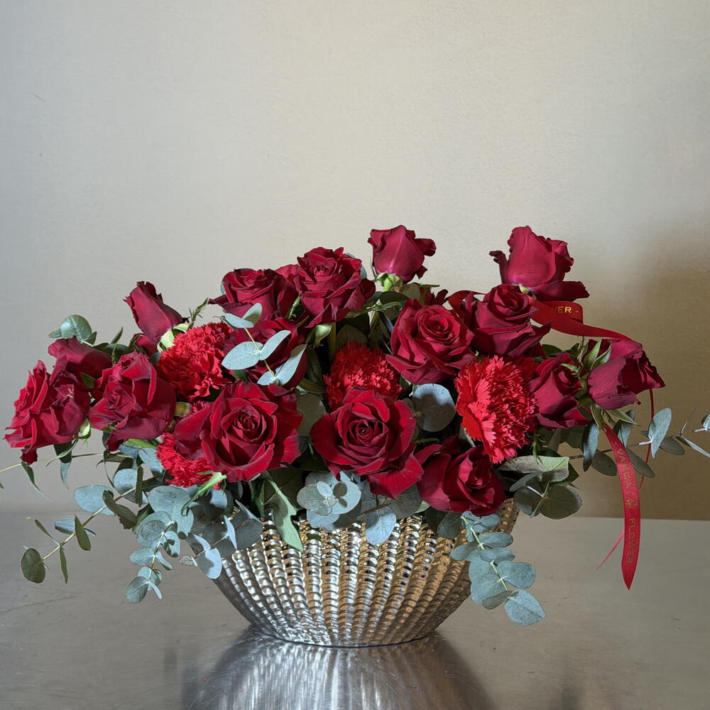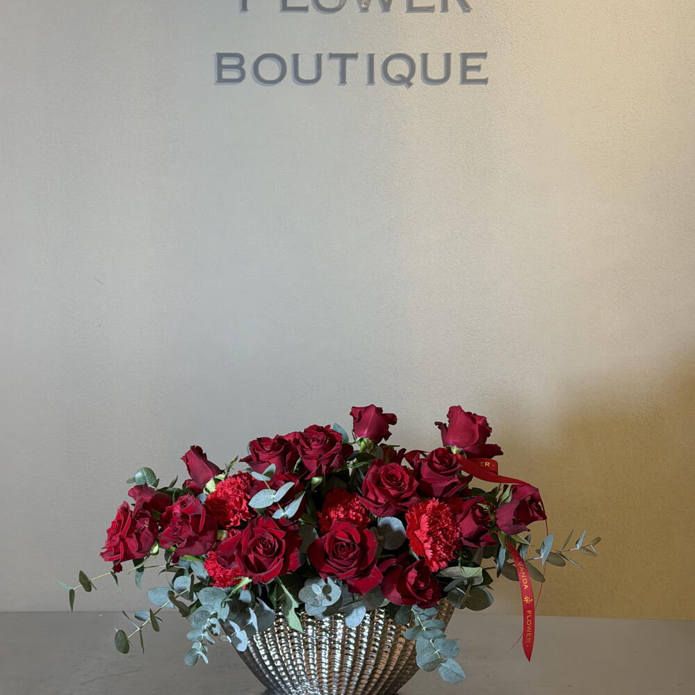 Red rose - 30 ud. Leaves - 5 ud. clavel - 12 ud.