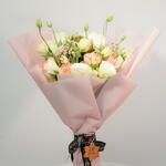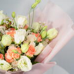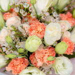 Eustoma white - 7 ud. eustoma púrpura - 5 ud. clavel naranja - 10 ud. blanco ceroso - 5 ud.