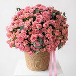 Toujours 365 rosas spray rosa en una cesta francesa tejida a mano