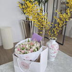 The flowers are in an amazing condition and same size as at photos given! The chat with company was very friendly. Combination of flowers taken in bouquet and overall experience ordering with this shop was on another level😍 11/10