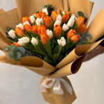tulipán blanco - 20 ud. tulipán naranja - 20 ud. hojas y otros. - 10 ud.