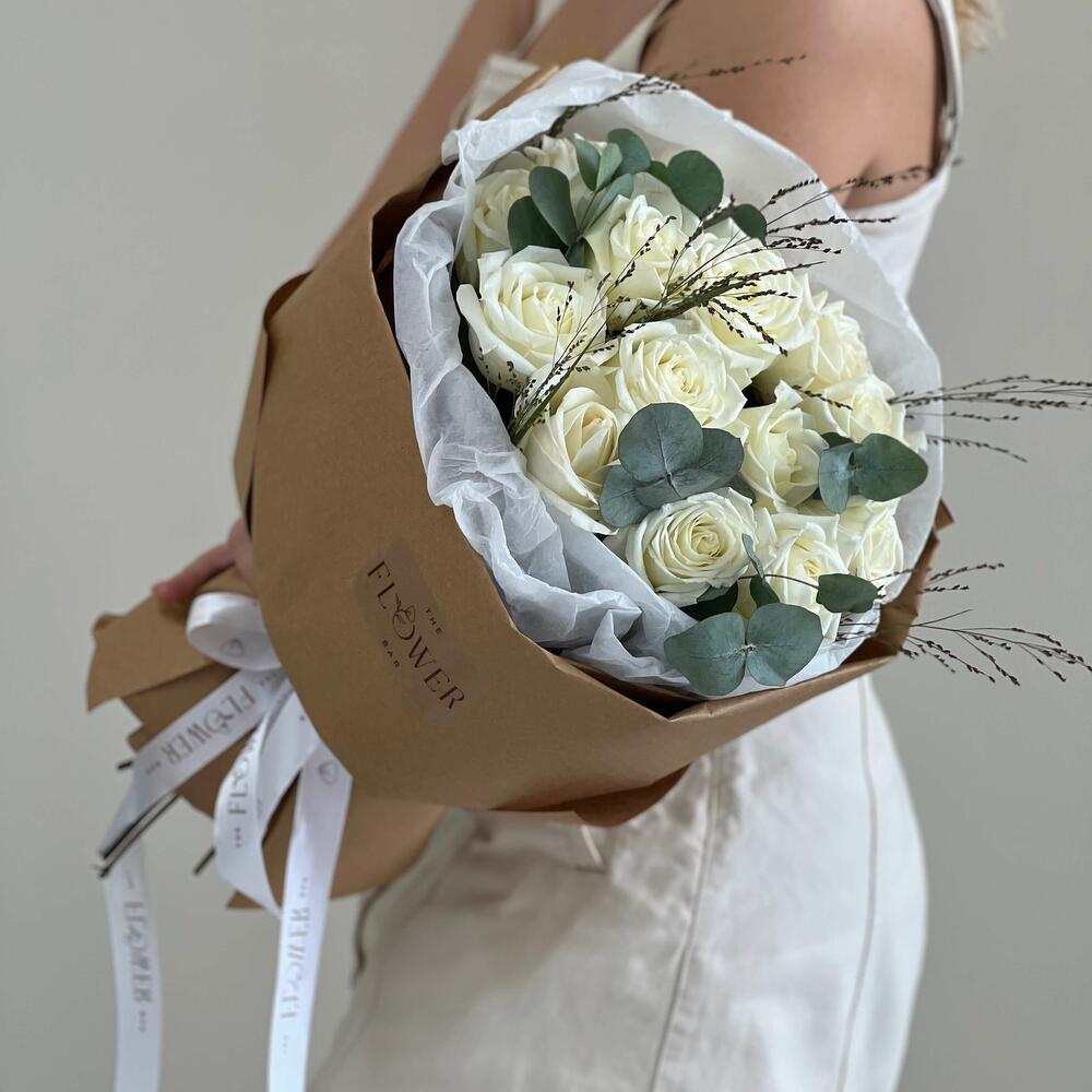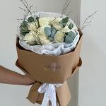 Eucalyptus - 1 ud. Wrapping - 1 ud. rose white - 20 ud. panicum - 1 ud.