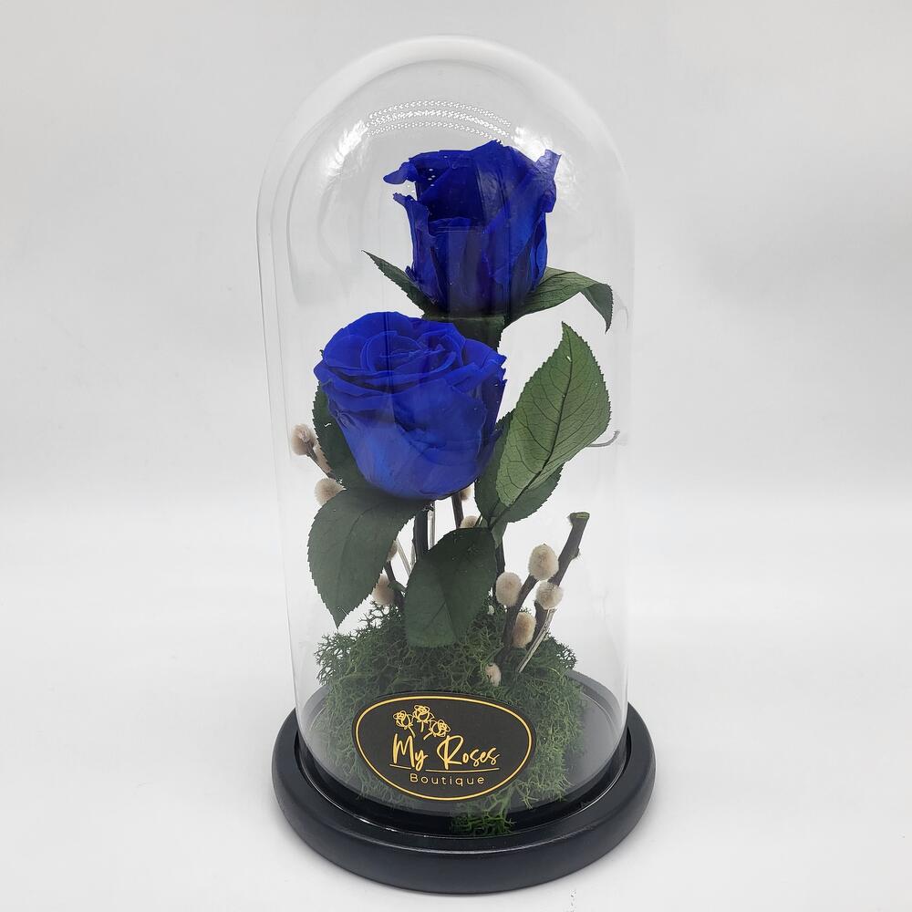 cúpula de vidrio - 1 ud. rosas azules eternas - 2 ud.