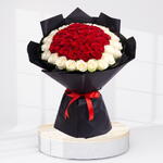 26 tallos de rosas rojas 25 tallos de rosas blancas con envoltorio de lujo y cinta