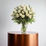 White rose - 25 ud. jarrón de cristal - 1 ud. espuma oasis - 1 ud. follaje de helecho de cuero - 5 ud. tallo de hojas de pistacho - 2 ud.