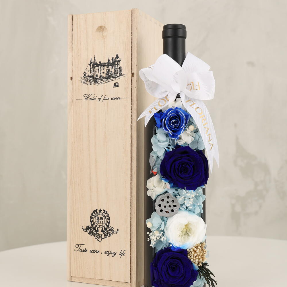 Savorea la fusión de lujo y romance con FLORIANAs Elixir del Amor — una creación innovadora para San Valentín donde la belleza atemporal se encuentra con el placer clásico. Esta pieza única presenta una selección de exquisitas rosas rojas de larga duración, meticulosamente dispuestas dentro de una botella de vino abierta, simbolizando una mezcla de amor apasionado y el rico y pleno recorrido de un vino fino. Presentado en una caja de madera elegantemente elaborada, este regalo es una perfecta sinfonía del amor perdurable y su esencia embriagadora.