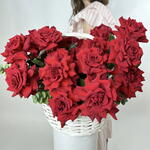 Este ramo de 51 rosas francesas Burdeos de color escarlata en una cesta es el epítome del lujo, la elegancia y la sofisticación. Estas flores, parecidas a peonías, están dispuestas en una cesta clásica, lo que le confiere al ramo un aspecto sofisticado.