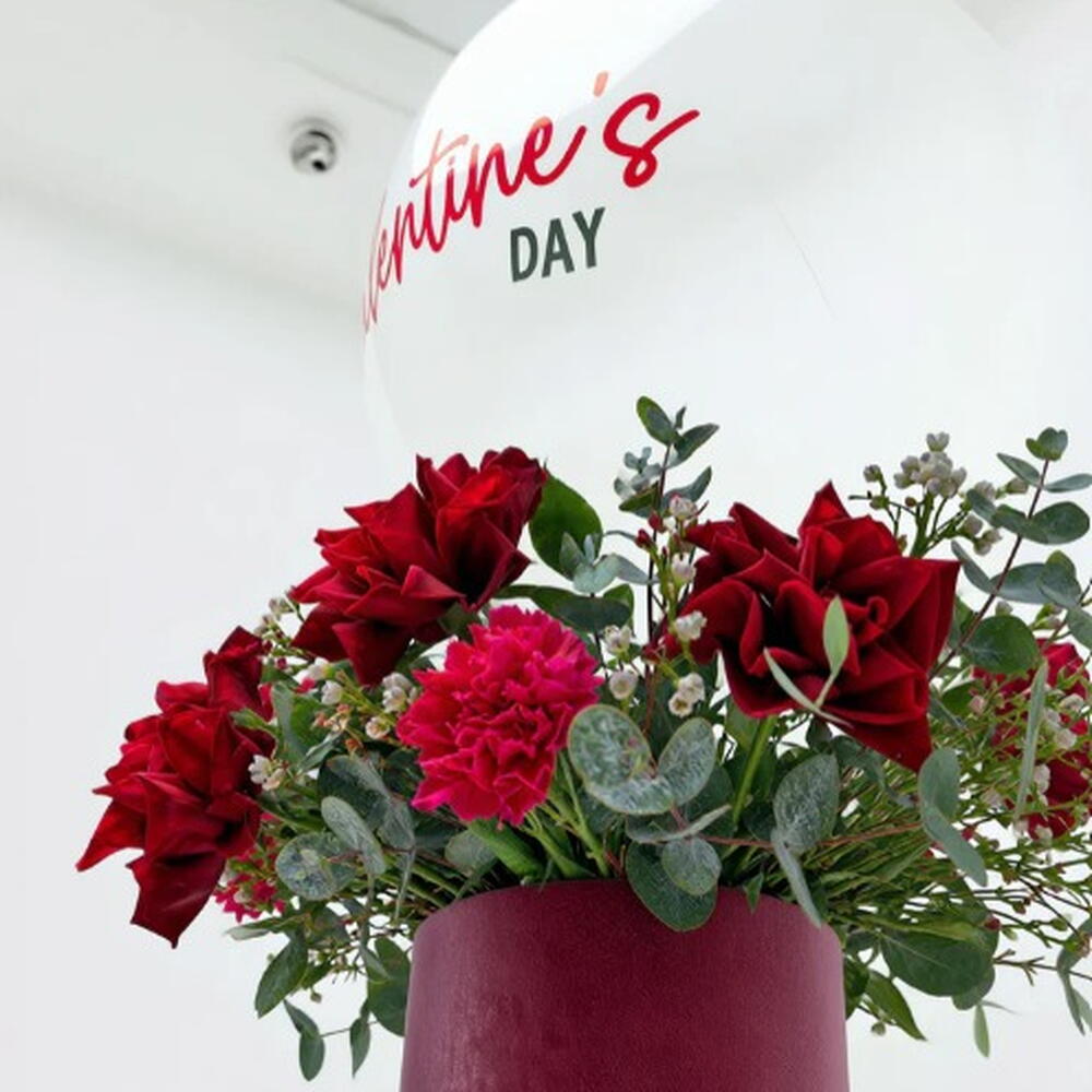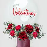 Caja de flores con globos para el Día de San Valentín