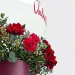Red rose - 4 ud. Leaves - 10 ud. carnation - 3 ud. cera - 6 ud. globo feliz día de san valentín - 1 ud.