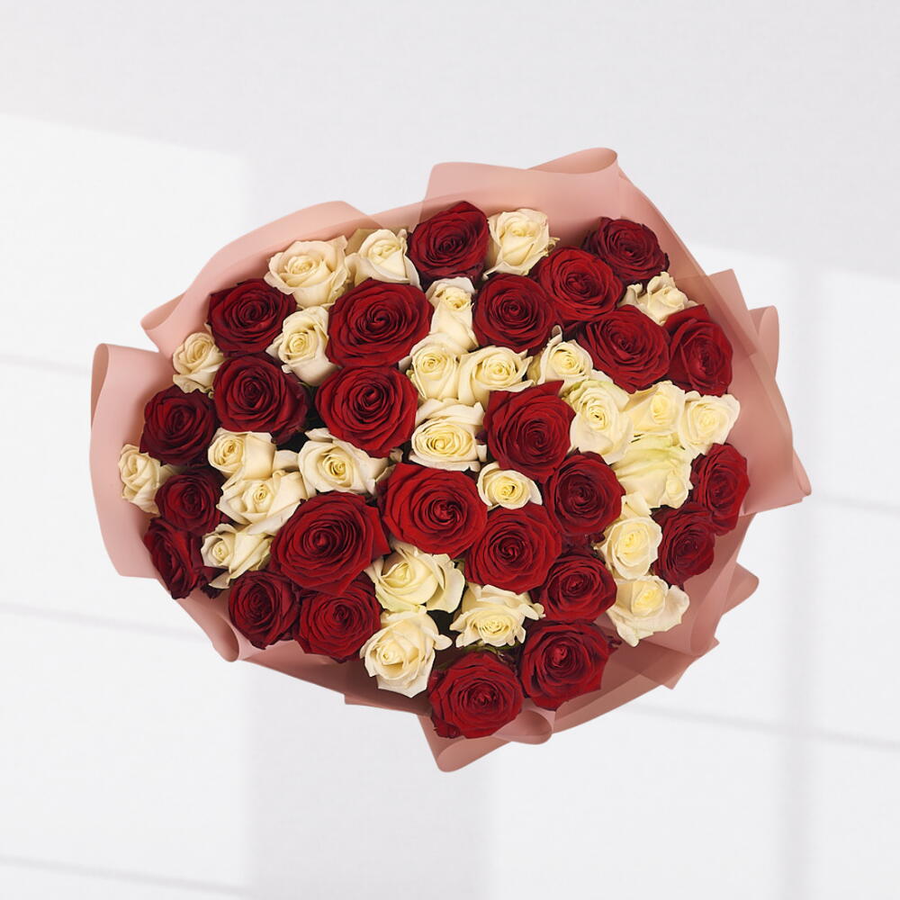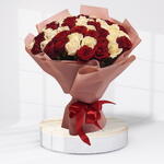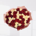 31 tallos de rosas rojas, 20 tallos de rosas blancas con cinta de regalo de lujo