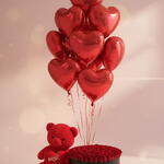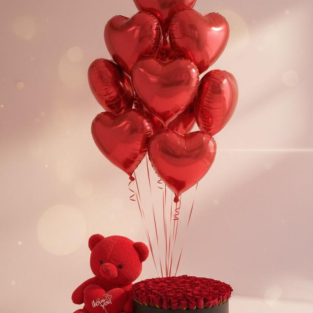 globos rojos en forma de corazón - 10 ud. red roses in box - 200 ud. 1x osito de peluche - 1 ud.