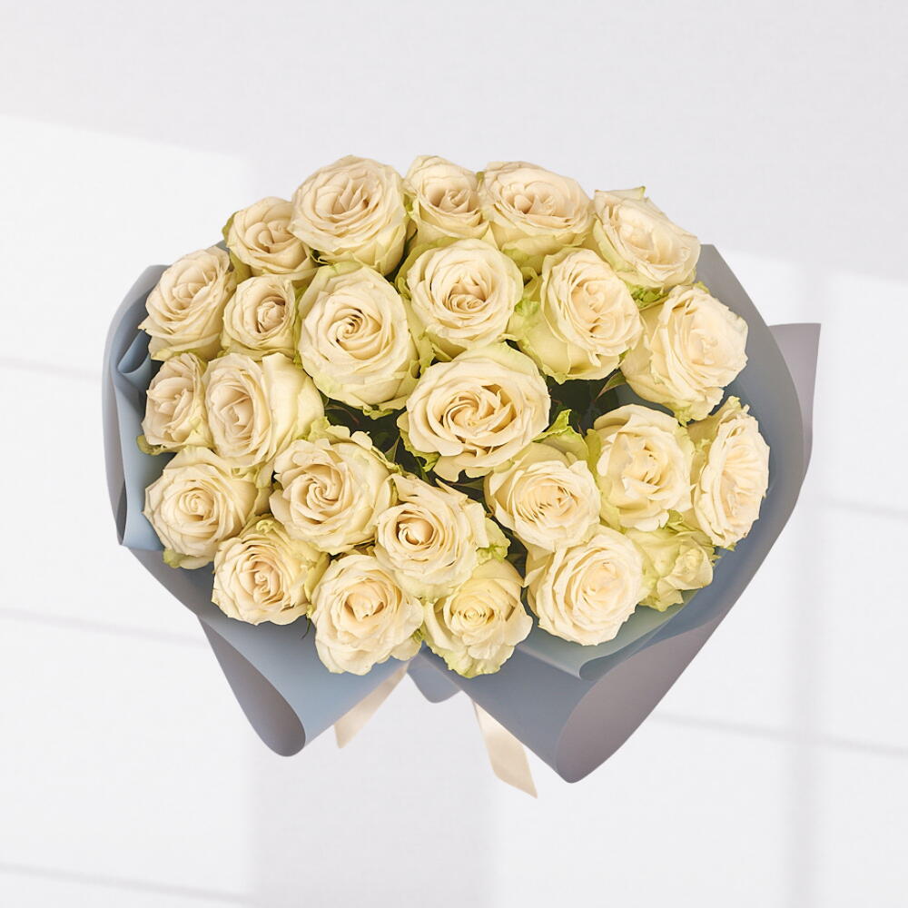 Rosas blancas de 31 tallos con cinta de regalo de lujo