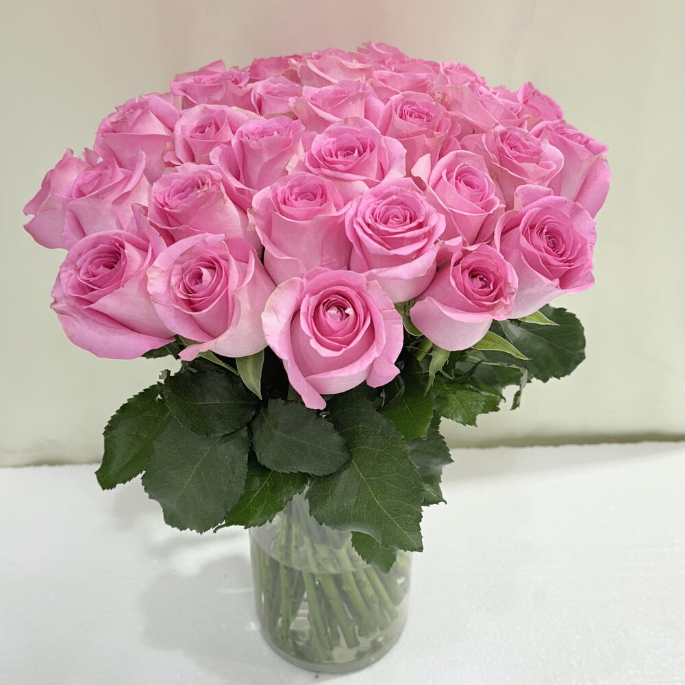 Arreglo en jarrón rosa