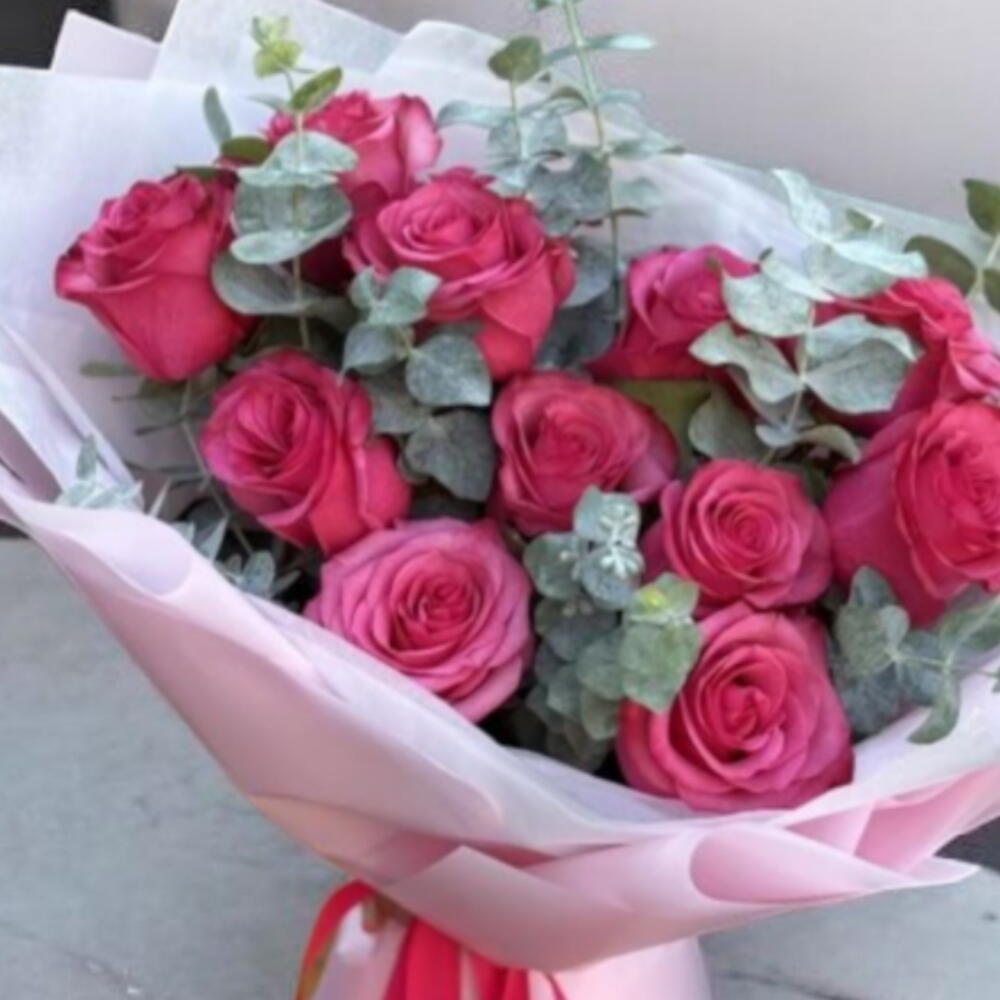 rosa rubor - 11 ud. ramo de hojas de eucalipto - 1 ud.