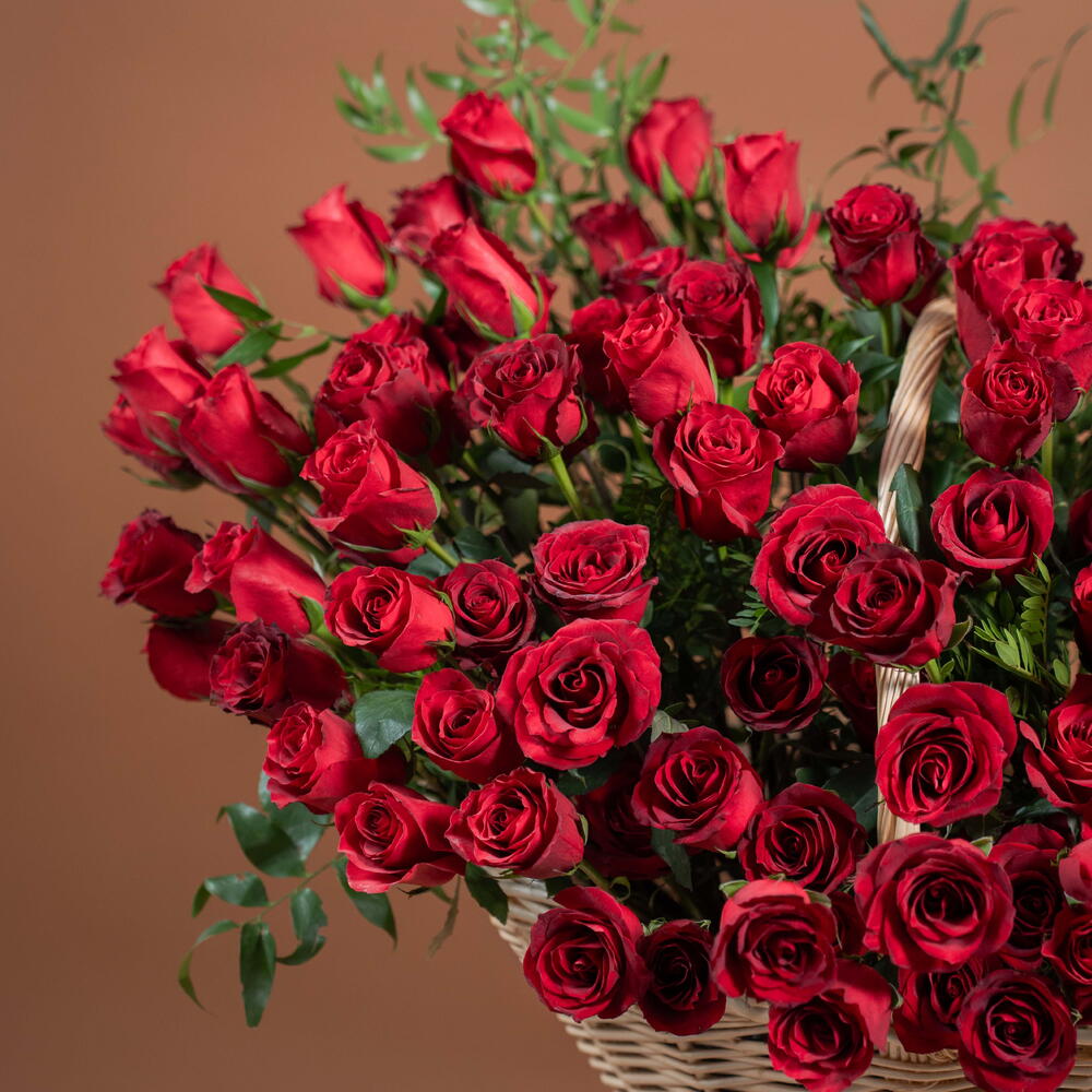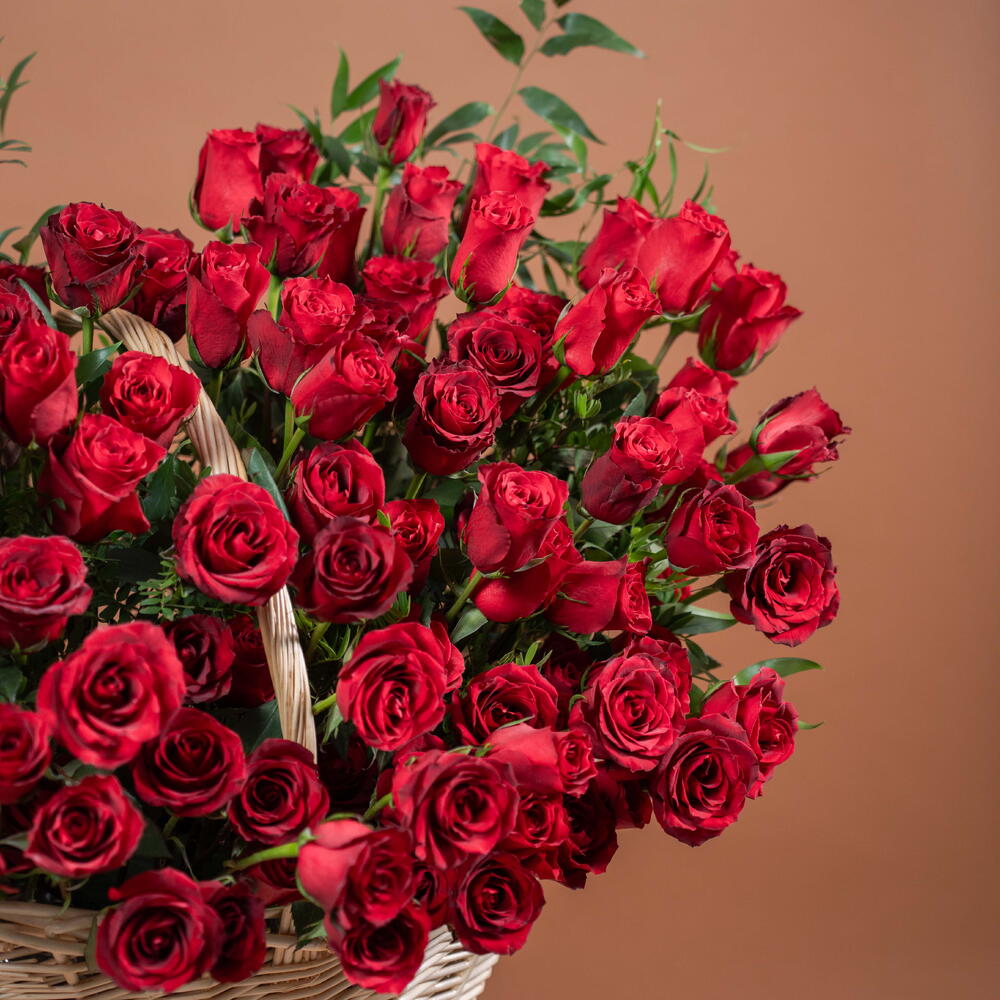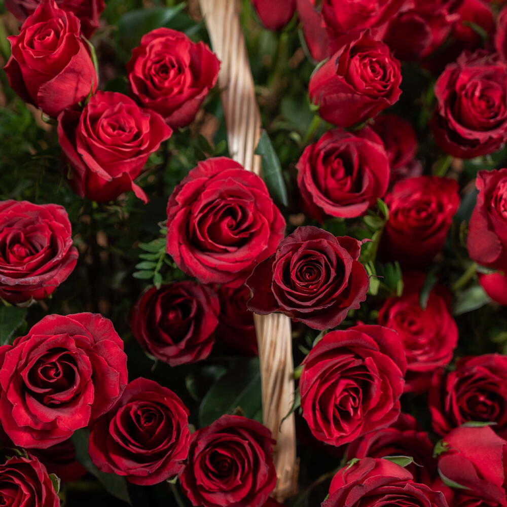 ruscus italiano - 5 ud. red roses - 201 ud. cesta gigante - 1 ud.