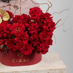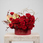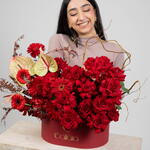 Anthurium - 3 ud. gerbera roja - 6 ud. salix - 2 ud. hortensia roja - 2 ud. red roses - 30 ud.