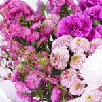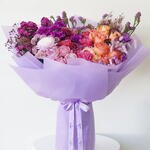 carnation - 10 ud. statice púrpura - 5 ud. rosas mixtas - 15 ud. crisantemo - 5 ud.