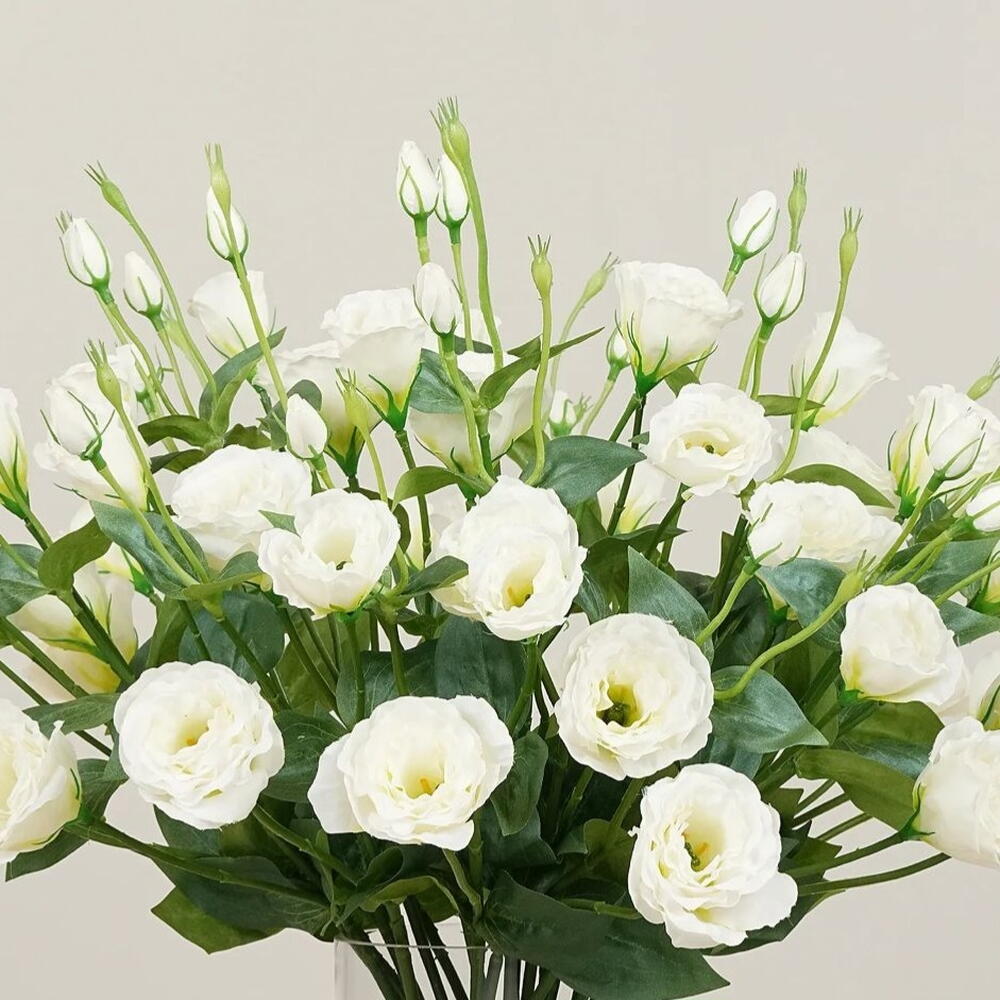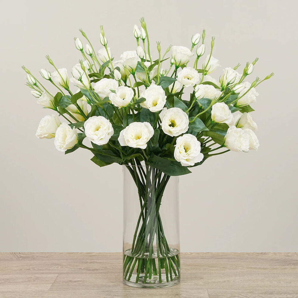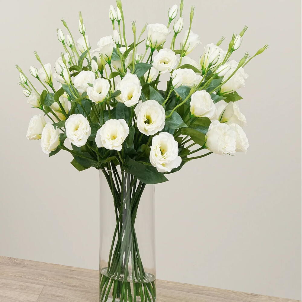 jarrón de cristal - 1 ud. tallo de eustoma blanca - 8 ud.