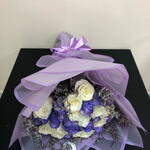 White rose - 11 ud. purple rose - 10 ud. limonium púrpura - 5 ud.