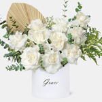 Una mezcla refinada de flores blancas y vegetación exuberante, que simboliza la pureza, el respeto y la elegancia atemporal del amor inquebrantable de un padre.