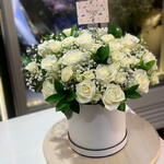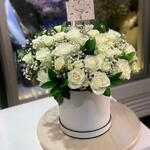 White rose - 20 ud. Gypsophila - 5 ud. ruscus leaves - 7 ud.