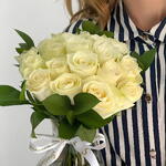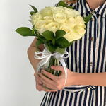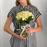 La cinta - 1 ud. White rose - 21 ud. Greens - 6 ud. Vase - 1 ud.